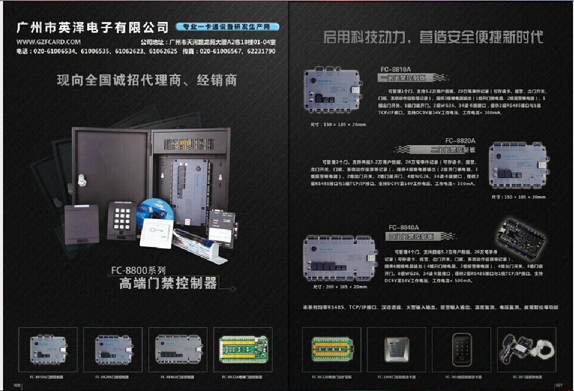 我们提供常用与专业功能外,还为FC-8800系列门禁控制器新加入了市面其它同类产品没有或少有的技术:如读卡器线路异常检测与提示、语音提示指引、系统环镜温度监测、输入电源稳定监测、产品试用期限、门禁在线巡更、卡有效期过期提前提示、智能时钟误差每天自我修正、出门开关受时间段控制、远程读卡拍照、防盗报警主机功能、读卡间隔设置、门磁报警时间段管理、通信加密数据、卡片有效次数、容量自行扩展、Weigand键盘发卡等新功能。可以说FC-8800系列门禁控制器是目前的国内外最先进的门禁产品之一。
